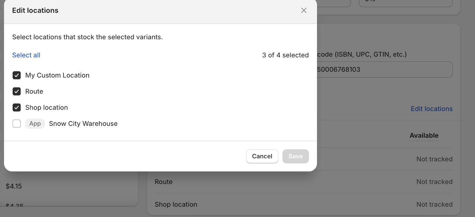 - Check the box(es) next to every location where you fulfill online orders to “stock” Route